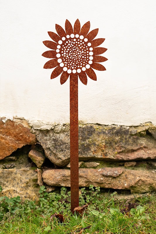 Celoroční slunečnice z cortenu. Zapichovací dekorace, která neuvadne.
