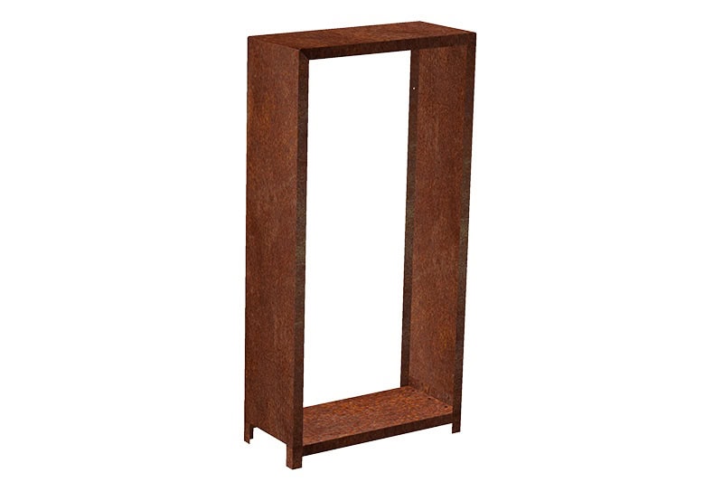 Cortenová ocel je ideálním materiálem pro zahradní architekturu. Vlivem povětrnostních podmínek si vytváří vlastní ochrannou patinu, která brání hloubkové korozi. Dřevník je tak zcela bezúdržbový – není třeba jej natírat ani lakovat. Proces zrání patiny probíhá postupně: